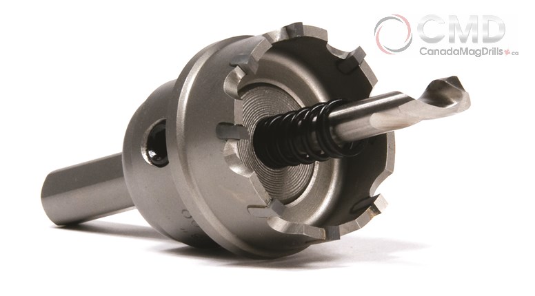 CARBIDE HOLCUTTER™ FOR SHEET METAL AND THIN MATERIALS day out use. Features a shoulder stop to prevent over penetration of the work piece. Ejector Spring helps with slug ejection. Tungsten carbide provides long tool life and smooth cutting action. Dramatically outlasts bi-metal hole saws and step drills. For materials up to 1/8″ (3.2mm) thick. (All cutters include arbor, pilot and spring.)